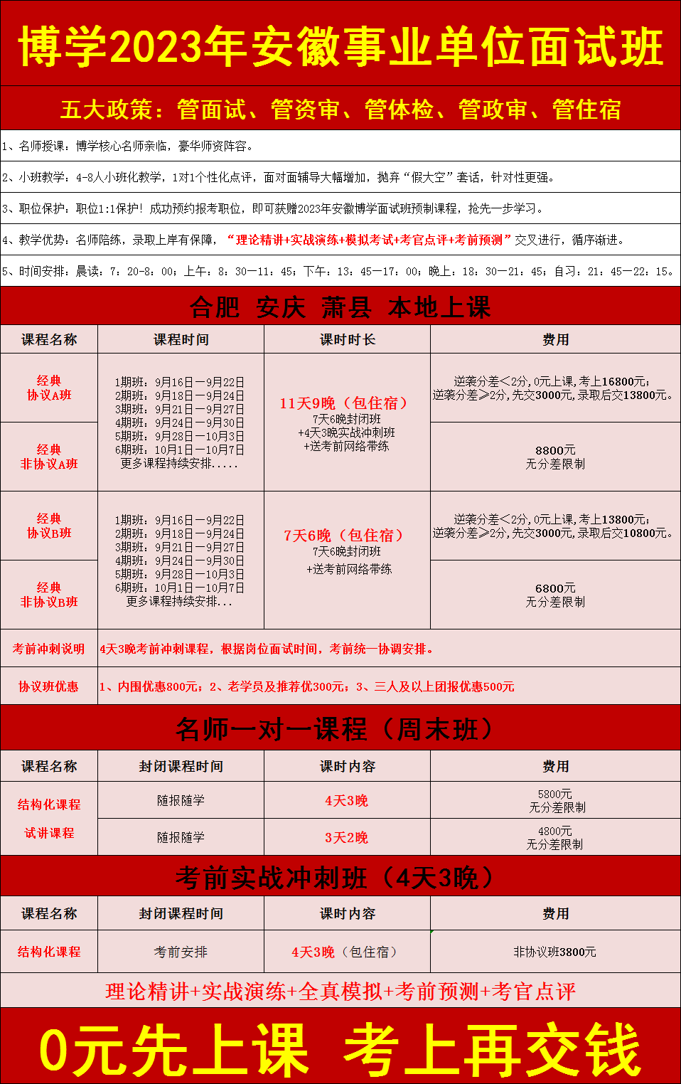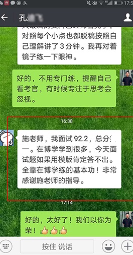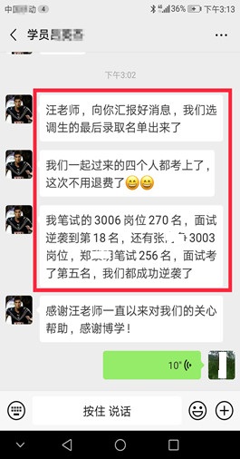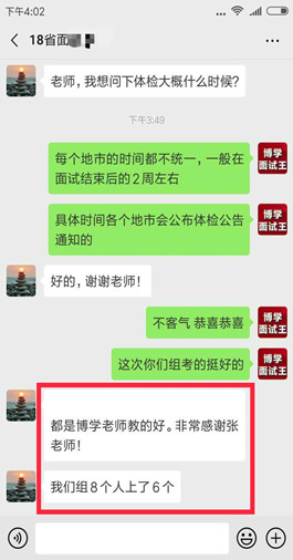 面試上岸有保障(指最終報考單位錄取)。 歷年來,事業(yè)單位面試培訓(xùn)班上岸率有保障,均有據(jù)可查。博學(xué)面試課程體系無論是課程的深度、廣度、實戰(zhàn)性還是歷屆學(xué)員口碑和美譽度都遠高于其他同類輔導(dǎo)機構(gòu)。面試狀元、最后一名反超成功的比比皆是。 |