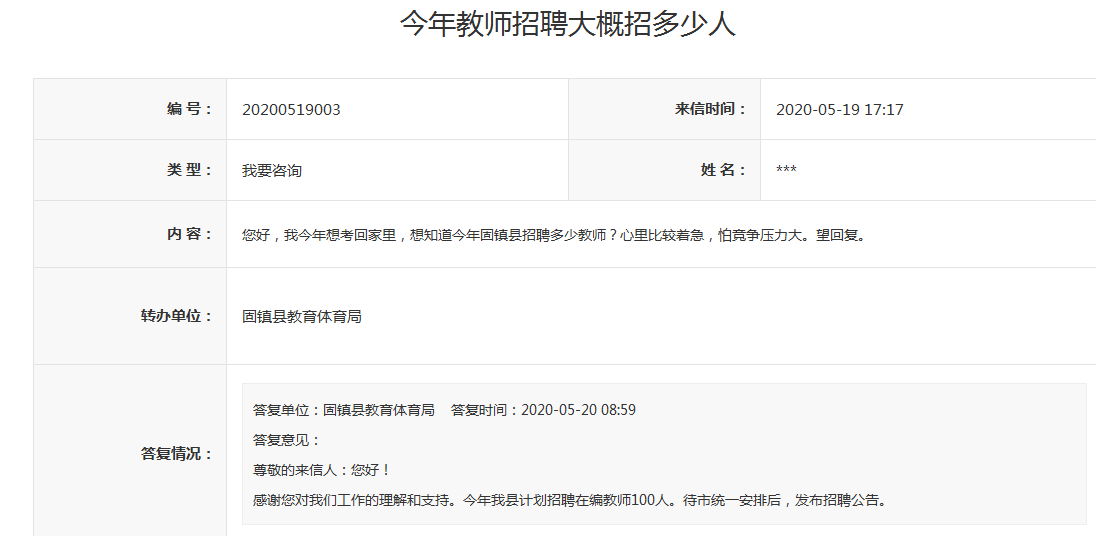 答復(fù)單位:固鎮(zhèn)縣教育體育局 答復(fù)時間:2020-05-20 08:59