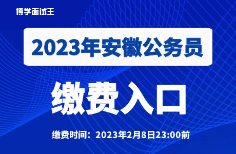 2023安徽公務員考試公告于1月18日發(fā)布,共招錄7256人。本次報名采取網(wǎng)上報名的方式進行(涉密等特殊職位除外)。報名時間為2023年1月30日9:00至2月5日23:00。報名網(wǎng)站為安徽省人事考試網(wǎng)(www.apta.gov.cn)。通過資格審查的報考者于2月8日23:00前登錄安徽省人事考試網(wǎng)通過第三方支付平臺(易寶)繳納筆試費用。未按時繳費的,視為放棄報名。(>>>繳費入口)