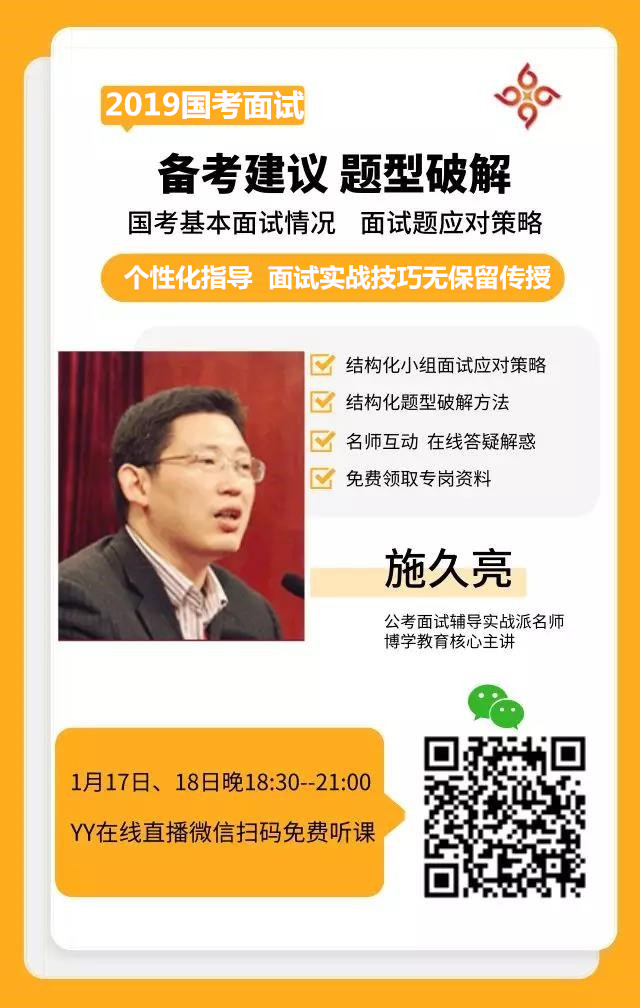 推薦閱讀:2019年國家公務(wù)員考試面試備考專題:成績查詢|面試時(shí)間|面試名單|面試公告|資格復(fù)審匯總