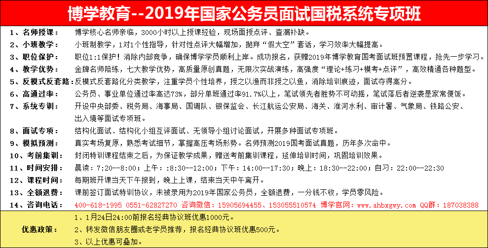 詳見協(xié)議(包括培訓費、教材費、住宿費、餐費、水果點心費等一切費用)。學員無論任何情況未被錄用為2019年國家公務員,我校將退還全部費用。