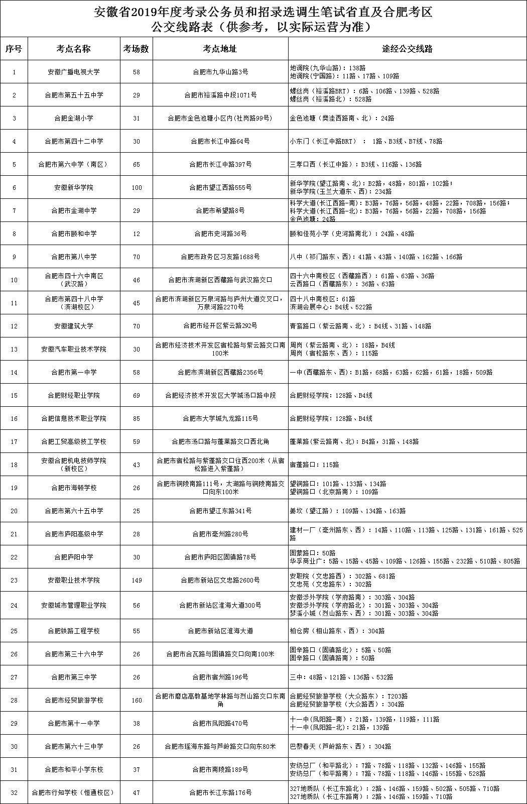 點(diǎn)擊下載:省直及合肥考區(qū)公交線(xiàn)路表